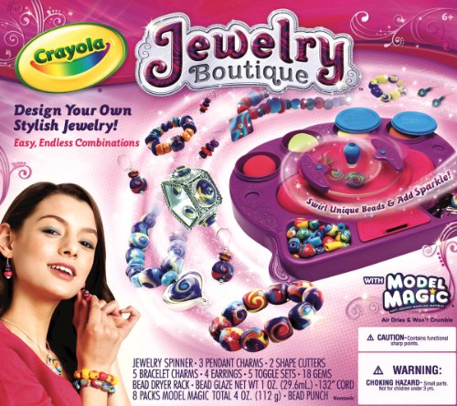 Crayola Model Magic Jewelry Studio lets you fashion fun and fabulous handmade trinkets, bracelets, necklaces and much more. The bead spinner mashes small amounts of Model Magic into marbled beads and baubles. Make handmade gifts for friends and family, host a jewelry-making party or create your own line of colorful accessories.